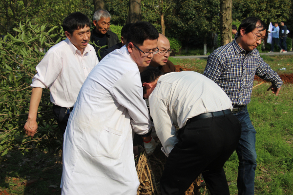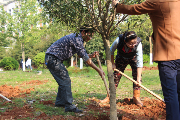 完成座谈会的议程后,药化药分党支部党员和民盟学院总支盟员在药学楼前空地一起开展了义务植树活动。在后勤集团绿化科同志的指导下,全体同志挖树坑、抬树苗、浇水,干得热火朝天,接连种下了桂花和红叶石楠树苗6颗。通过此次活动,增强了大家保护校园环境的责任感和环保意识。而且,有效加强了药化药分党支部党员和民盟盟员间的沟通和了解,提高了beat365亚洲版官网团队的协作能力,增强党的凝聚力。共同义务植树活动,种下的是树苗,播撒的是友谊,希望它们生根发芽、枝繁叶茂,收获和谐美好的果实。