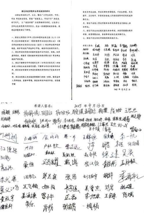 在班会期间,全体学生共同签署了《beat365亚洲版官网考生考试诚信承诺书》,承诺认真阅读考试相关法律法规,确保报考信息真实,遵守考场规则,杜绝作弊行为。学生们纷纷表示在以后的考试中要严守考纪,共同维护考试的公平公正。