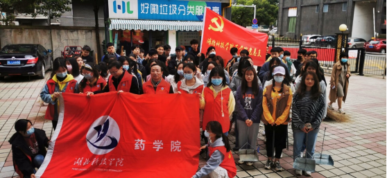 14时30分,药学楼下已经集合了参与本次活动的全体人员,同学们高举红旗,引领着队伍于南门出校步行至beat365亚洲版官网住宅小区。
