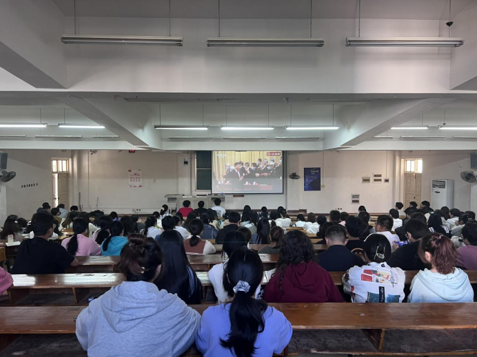 beat365亚洲版官网学生党员、青马班成员,团委学生会干部、入党积极分子及各班学生代表集中收看二十大开幕会