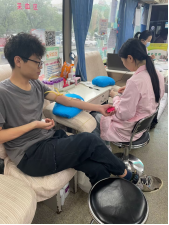 活动当天,虽艳阳高照,但前来献血的师生络绎不绝。在志愿者们的组织下,师生们按顺序进行了领表登记、血型测定、抽血和观察休息。在工作人员的讲解和鼓励下,不少同学们也克服恐惧,力所能及献出鲜血,处理创口之后,由志愿者带到休息区,每人赠送一份糖水和点心以及证书,同时询问并观察献血者身体恢复情况,整场活动有条不紊地进行着。遗憾的是,有不少同学因个人身体等原因这次不能献血,纷纷表示下次一定积极参加献血及其他志愿服务活动。