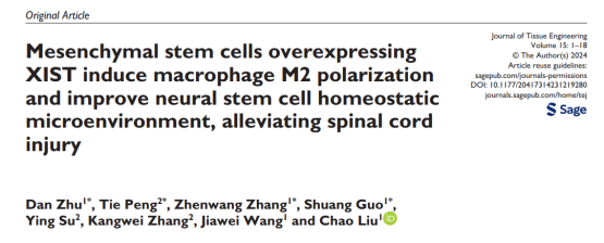 近期,beat365亚洲版官网朱丹博士以第一作者在国际期刊Journal Of Tissue Engineering(中科院一区,IF:6.7)上发表了题为“Mesenchymal stem cells overexpressing XIST induce macrophage M2 polarization and improve neural stem cell homeostatic microenvironment, alleviating spinal cord injury”的研究成果。该研究发现,通过过表达XIST的BMSCs可以诱导巨噬细胞M2极化,抑制炎症反应,加速NSCs稳态微环境重塑,从而促进损伤区域NSCs分化和轴突形成,最终缓解脊髓损伤。