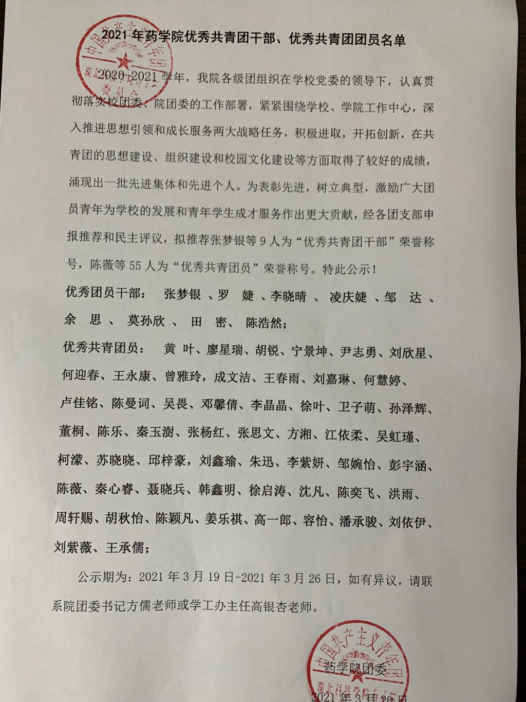 2021年beat365亚洲版官网“五四”优秀共青团干部、优秀共青团员名单