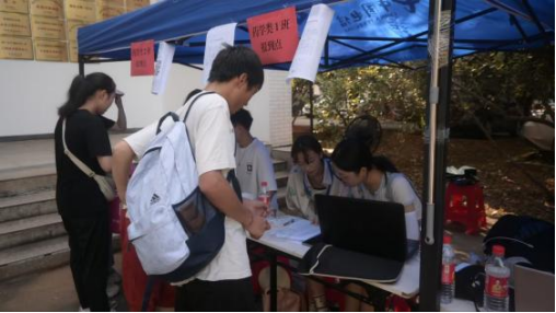 迎新的第一天,接待的新生源源不断,大部分的志愿者在午休时间仍选择留在岗位上,尽量不耽误新生报到。他们的勤恳付出,不仅锻炼了自己迎接了揽月湖畔的新主人,也向各位家长、社会各界展示了湖科学子积极向上、乐于奉献的良好精神风貌。