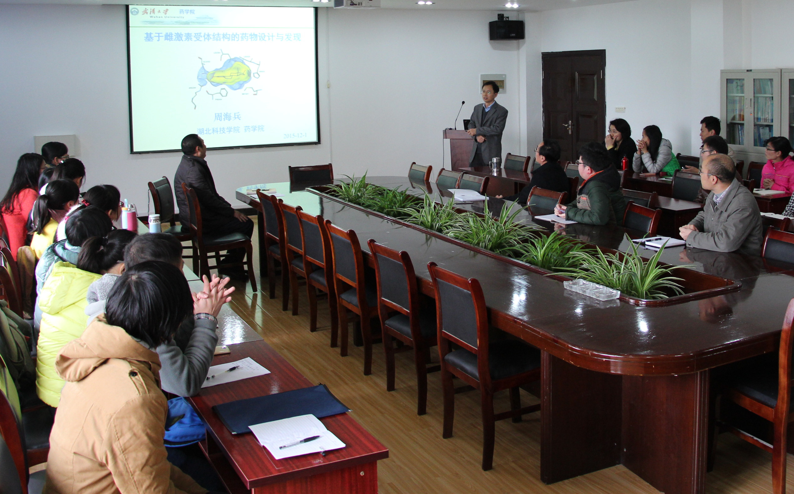 2015年12月1日 ,下午两点三十分,来自武汉大学珞珈学者特聘教授、病毒学国家重点实验室学术带头人周海兵教授,莅临我校做关于“抗肿瘤药物研究”学术报告,beat365亚洲版官网全体领导、老师、研究生参加报告。